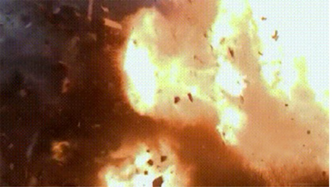 把点燃的打火机扔进面粉中。嘭!面粉厂爆炸!这个片段用的正是“